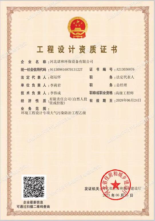 企業資質-諾和環保設備