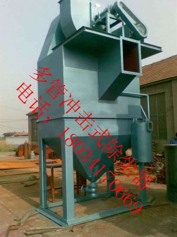CCJ多管沖擊式除塵器當含塵氣體由進風口進入除塵器后,大的粉塵顆粒被擋灰板阻擋下落,較小的粉塵則隨著氣流一同進入CCJ多管沖擊式除塵器聯體箱內。此時,含塵氣流經通風管道由較高的速度從噴口處噴出,因而沖擊液面撞擊激起大量的溶液泡沫和水滴。
