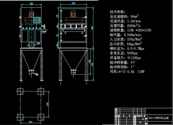 下面給大家介紹一下MC-120型脈沖布袋除塵器的技術參數: