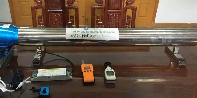 注意細節:臭氧濃度測試儀貼著不銹鋼內壁離燈管要放同樣距離,我司一般以離燈管3CM,風速以3米/秒來參照。