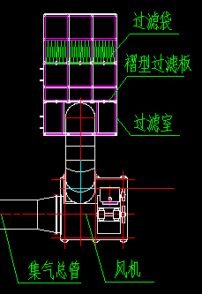 4.在收集煙氣管道一側設有離心通風機及過濾室氣,排煙量為20000m³/h。過濾室設置兩級過濾,_級過濾為G4級褶型式過濾板,_級為F6級過濾袋。過濾效率達到99%,經過濾室后排放的煙氣達到排放標準。過濾室設有檢修門,方便_換過濾板及過濾袋。