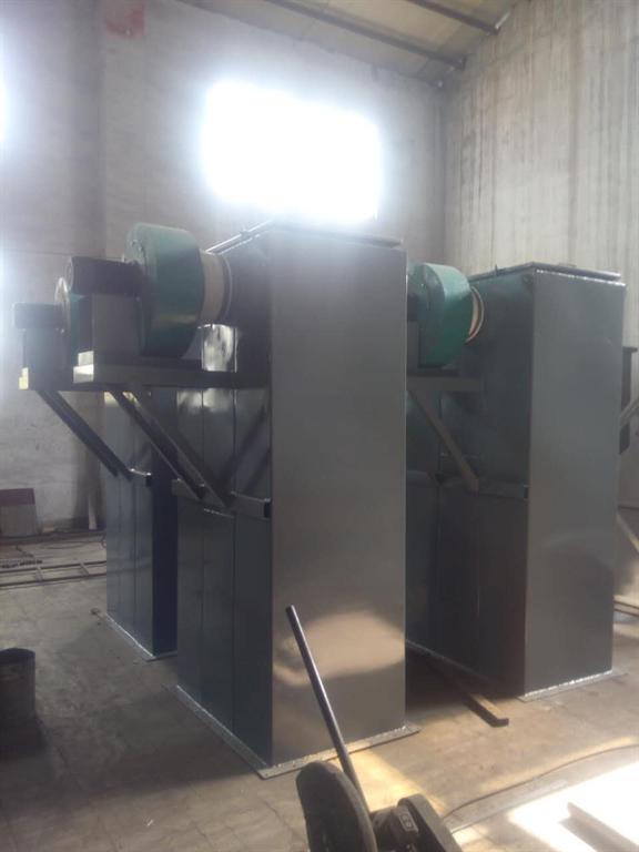 倉頂除塵器是一種方形可拆的金屬柜,底板上有24個嵌入圓形孔,它設(shè)有24條濾袋,分三組(每組8個)分別扎緊在上端3個振動器的吊架上,定時分別拉動三組吊架的牽動手柄,使濾袋阻留下來的灰塵降落在倉頂除塵器的方形金屬下端的料倉內(nèi)。